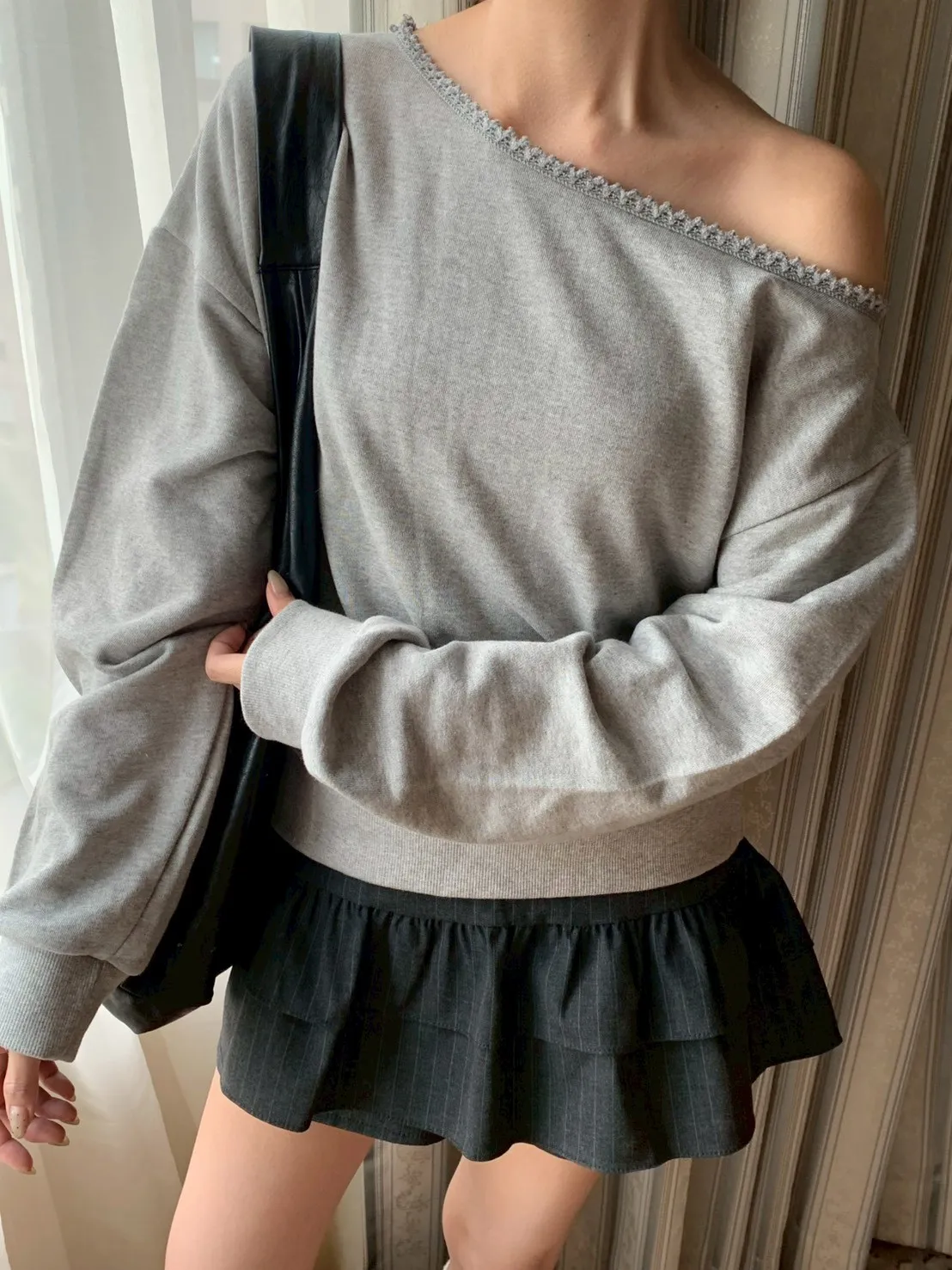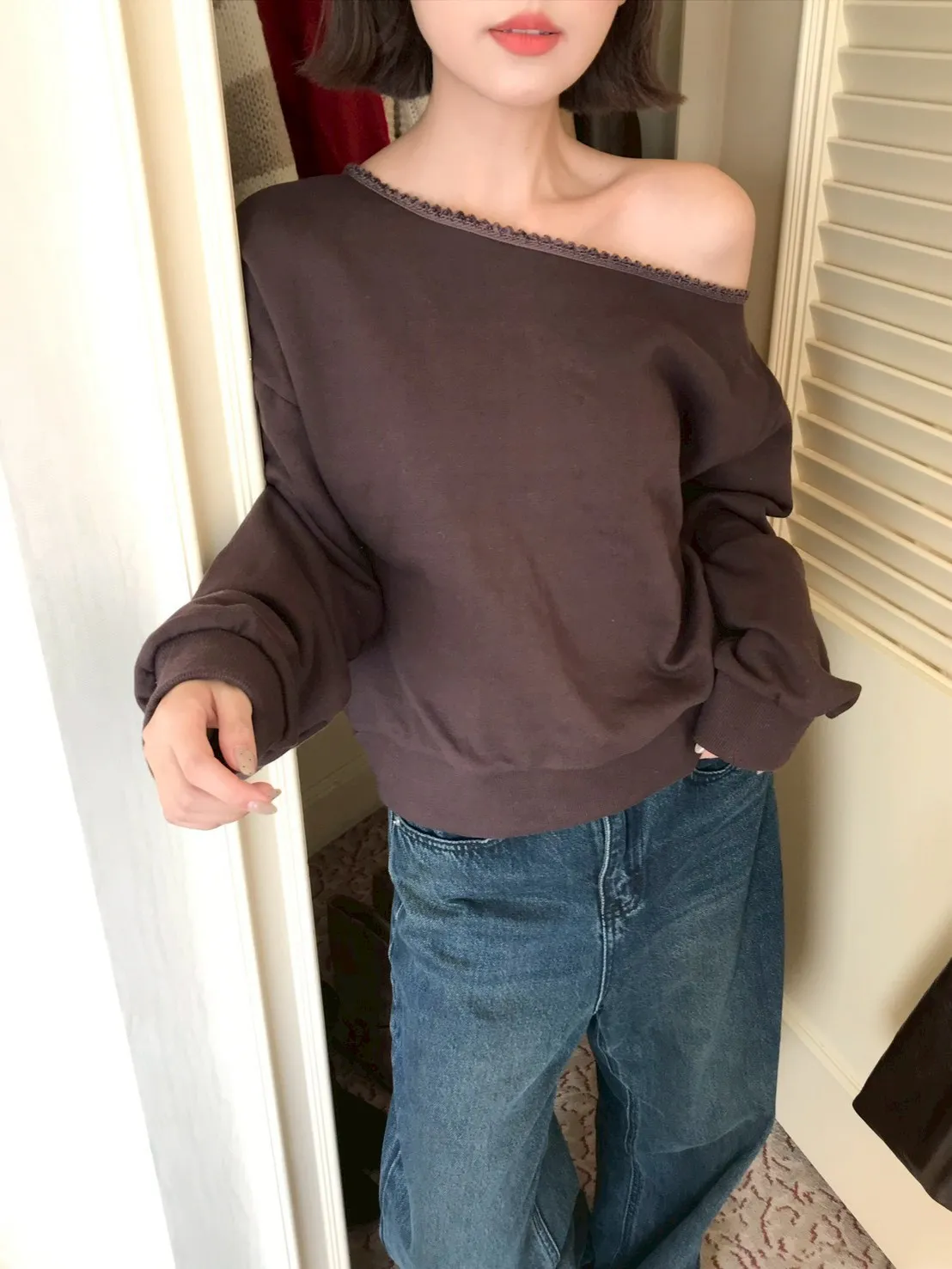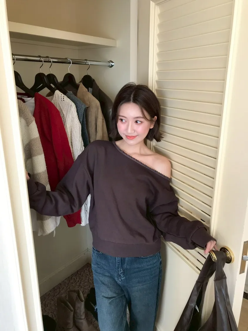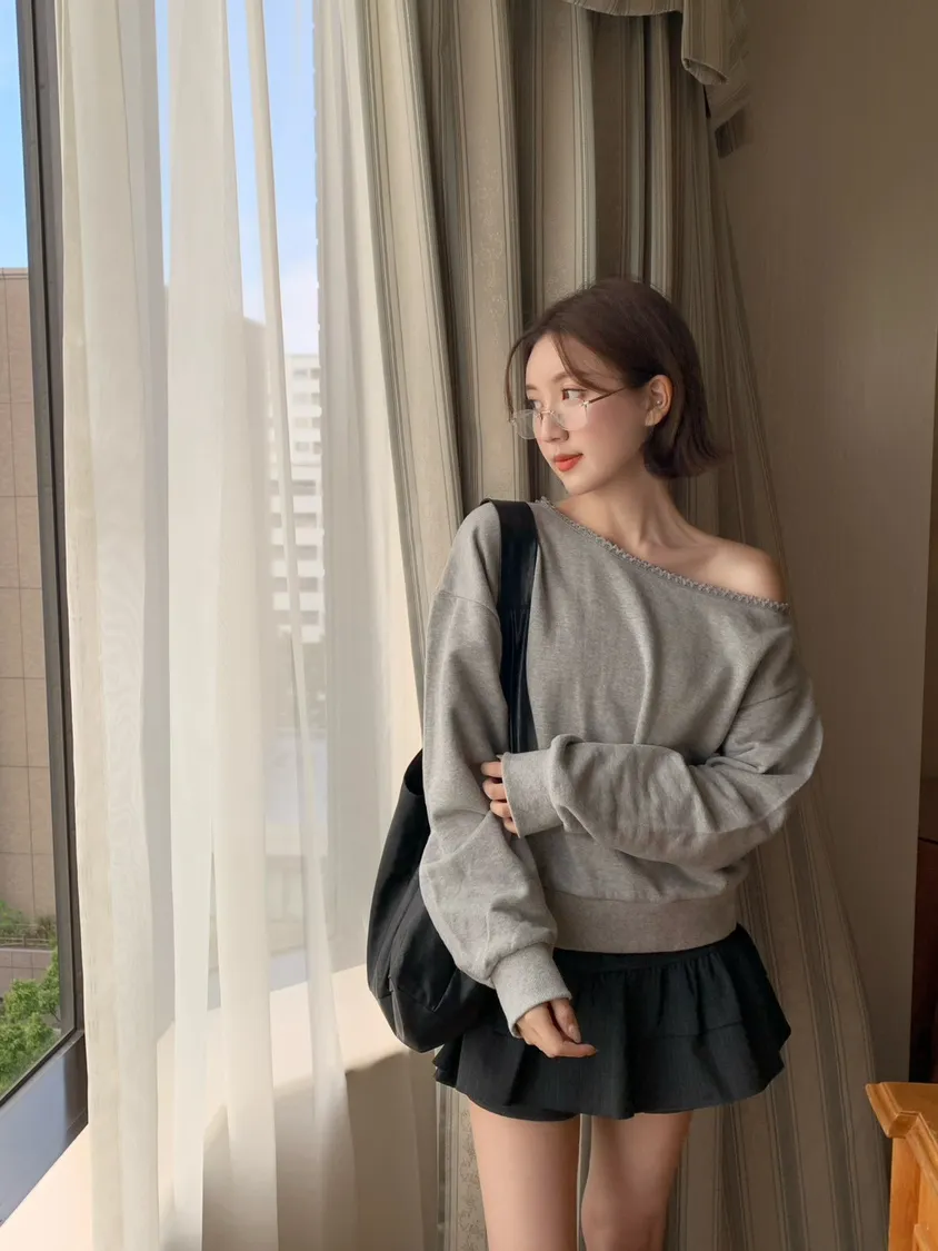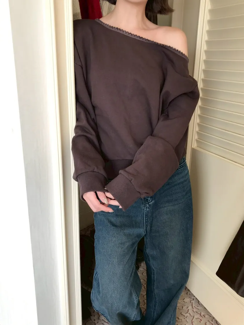 🇰🇷簡單愛 蕾絲斜肩上衣-2colors