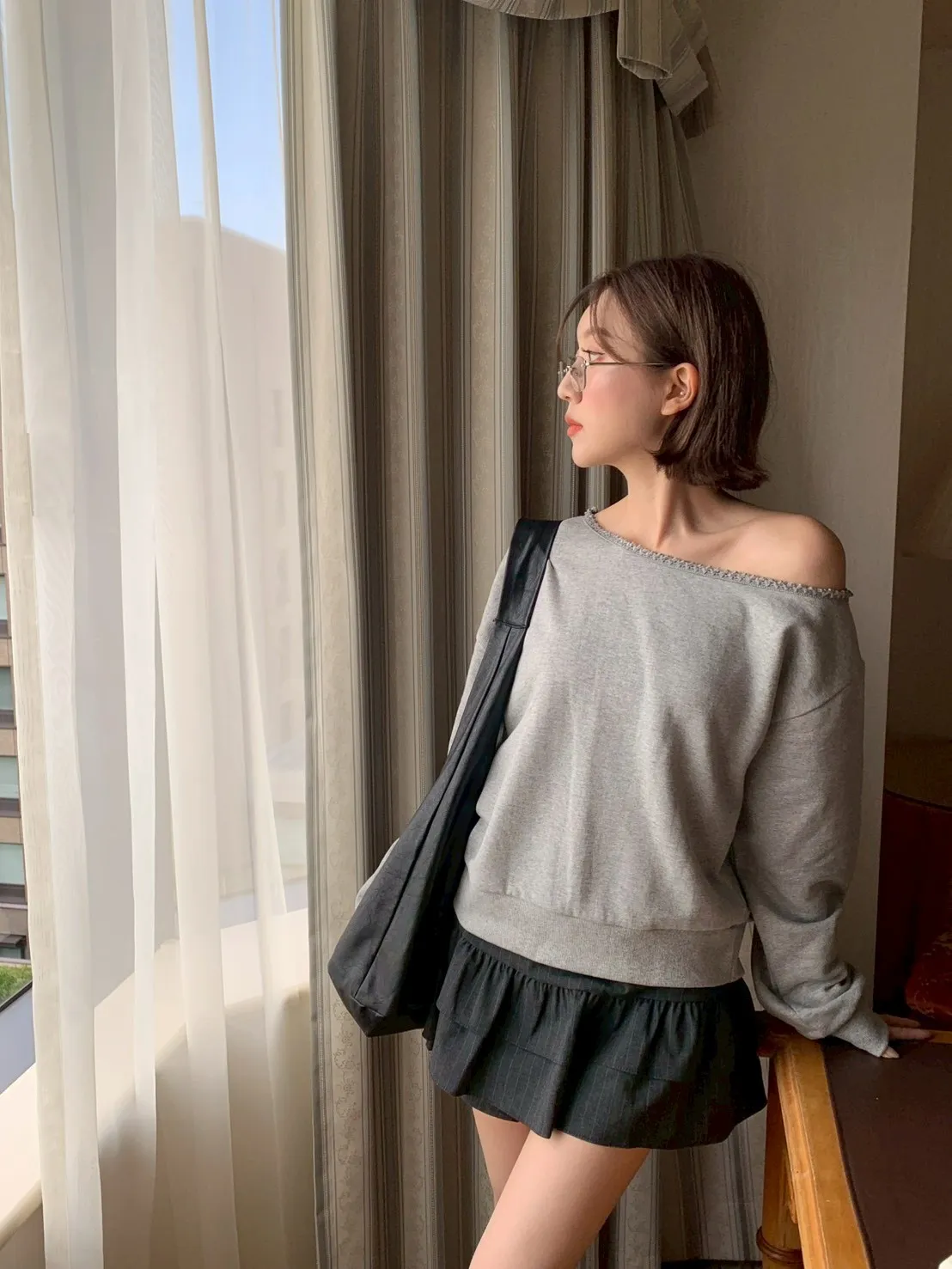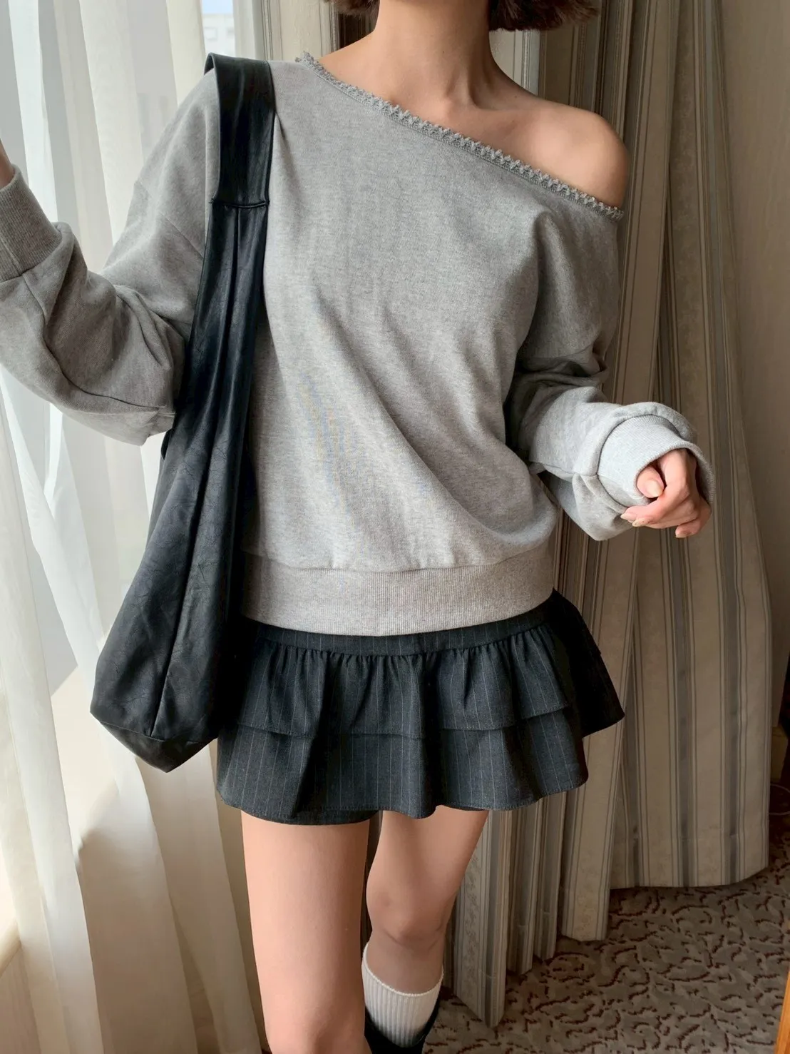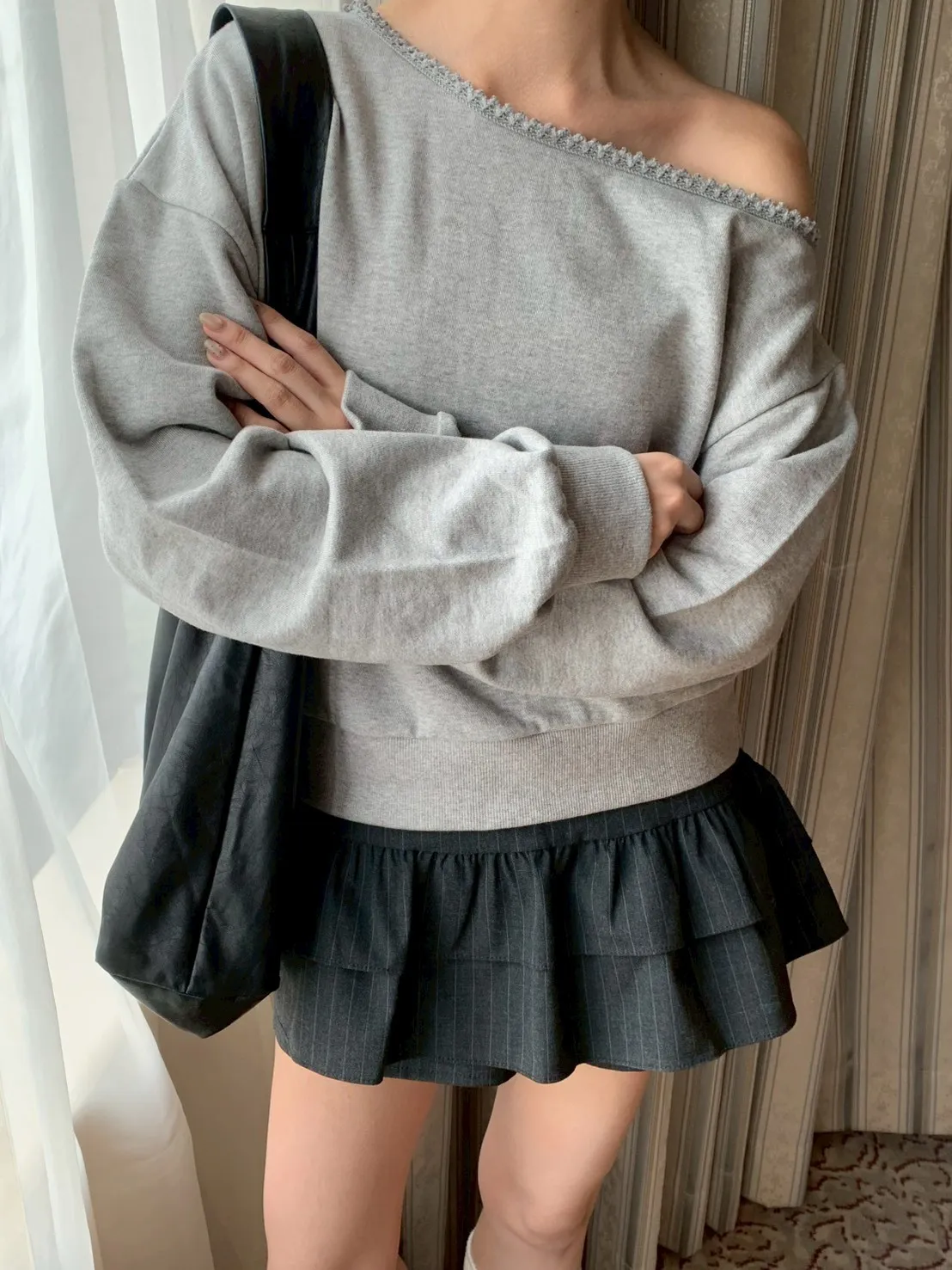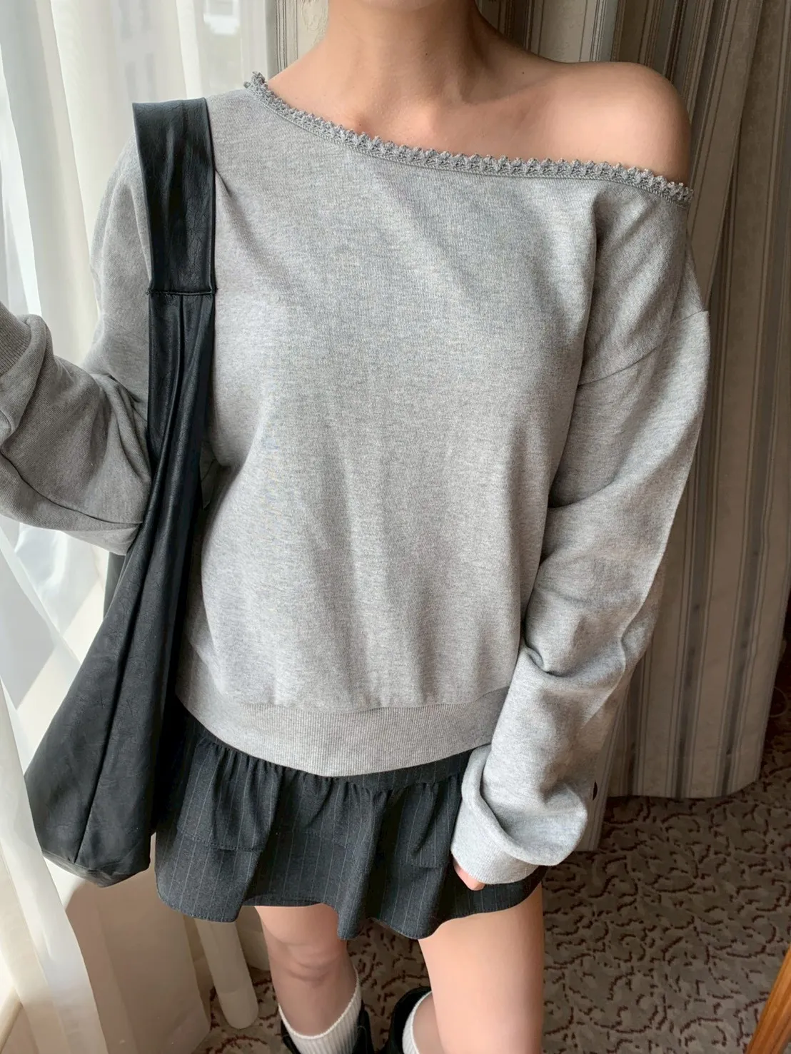 🇰🇷簡單愛 蕾絲斜肩上衣-2colors