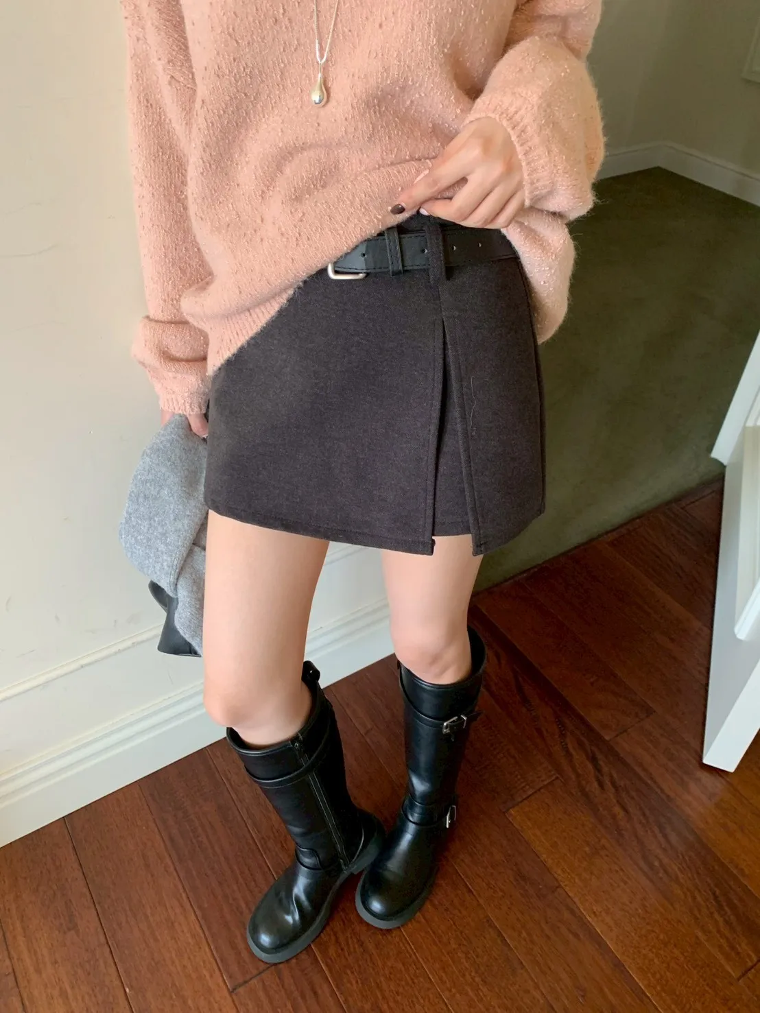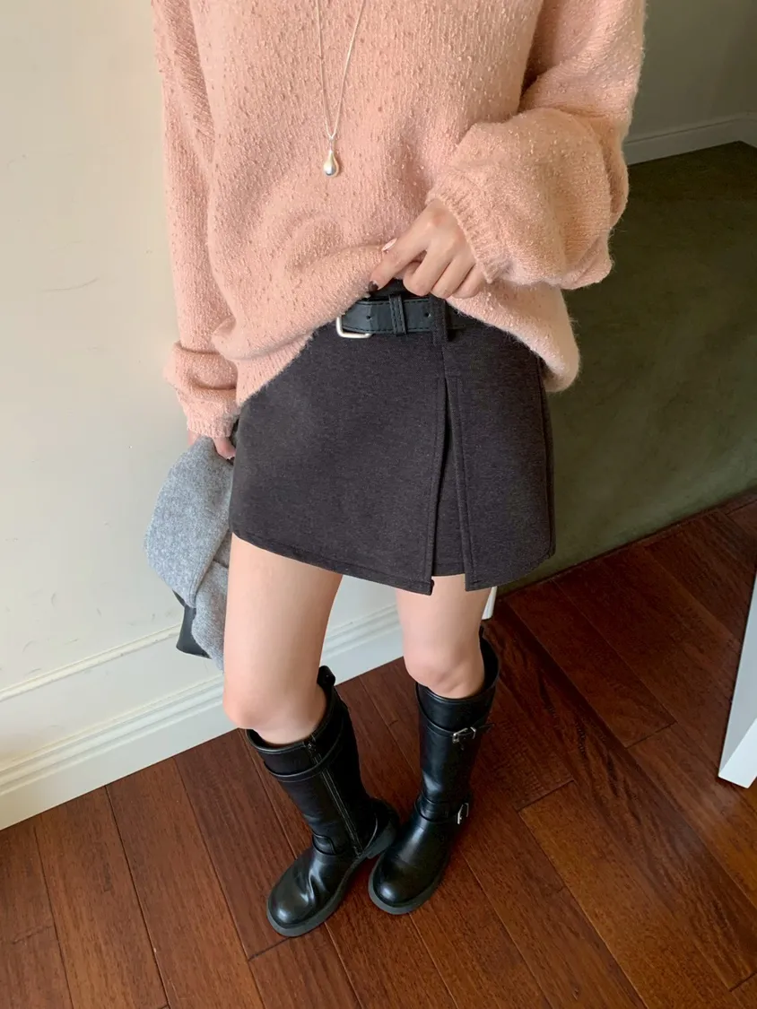 可鹽可甜 挺版開衩褲裙(附皮帶)-2colors